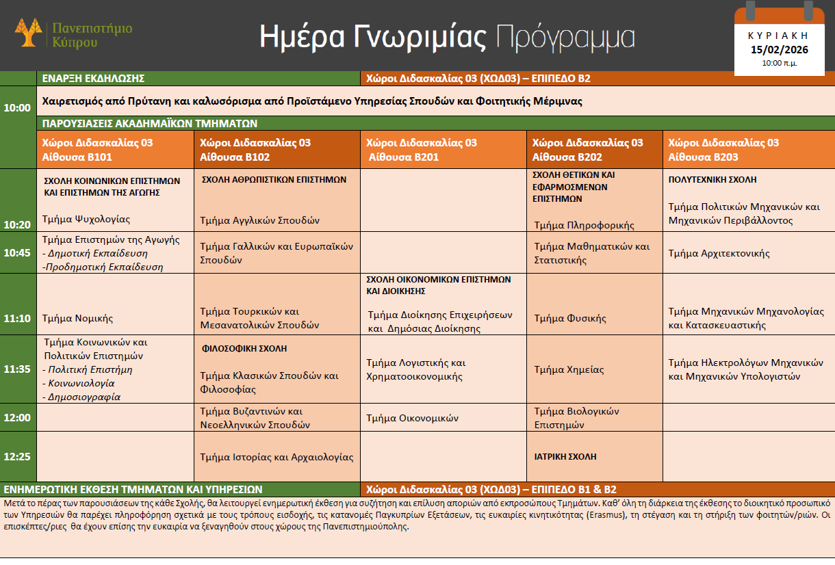 Ημέρα Γνωριμίας Πανεπιστημίου Κύπρου - 15/02/2026