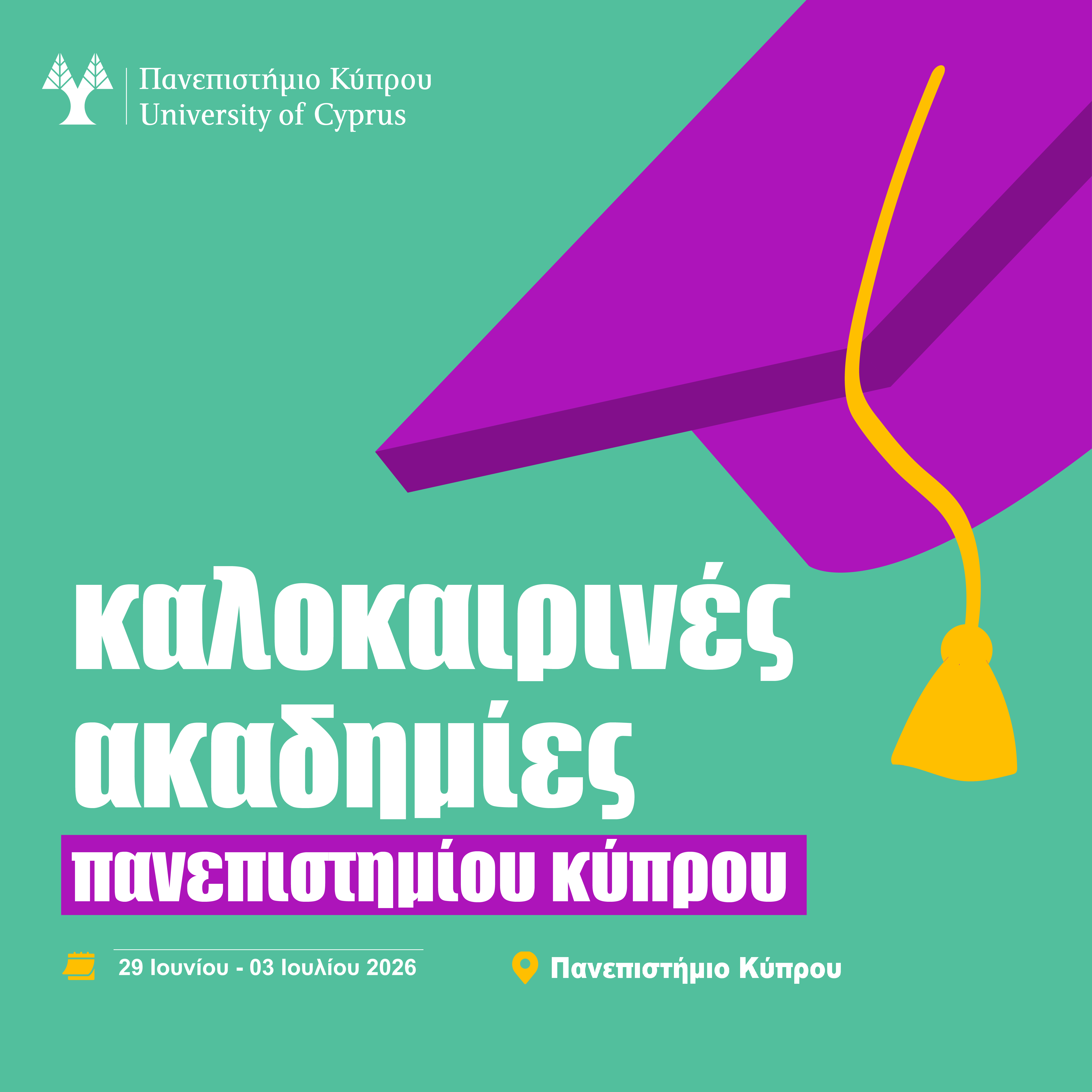 Για περισσότερες πληροφορίες και υποβολή αίτησης https://www.ucy.ac.cy/summeracademies/