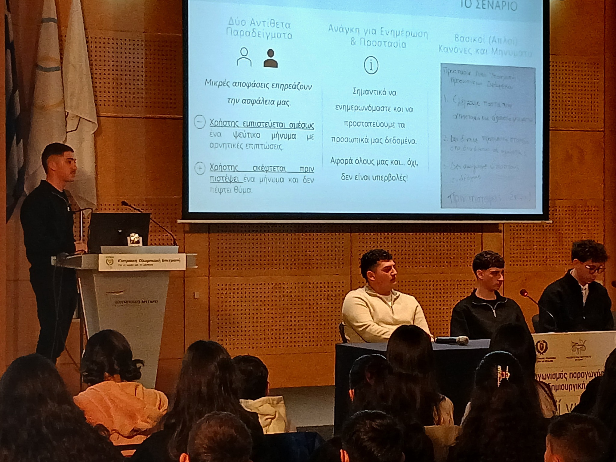 Η ομάδα μαθητών του σχολείου μας, με επιτυχία προκρίθηκε μεταξύ πολλών σχολικών συμμετοχών της Κύπρου, στη Β’ Φάση του Διαγωνισμού (Τελική Φάση), εξασφαλίζοντας Έπαινο, την Τρίτη 4 Φεβρουαρίου 2025, στην εκδήλωση που έλαβε χώρα, στο Κτίριο Εκδηλώσεων της ΠΟΕΔ στη Λευκωσία.