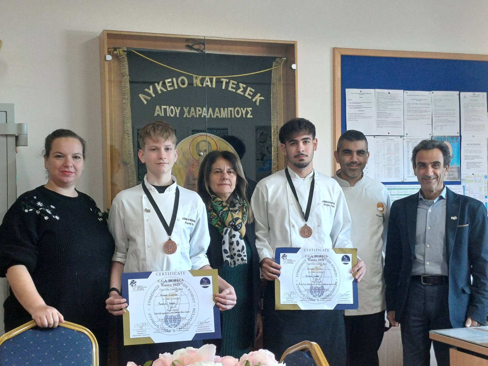Με ιδιαίτερη χαρά και υπερηφάνεια, το σχολείο μας, Λύκειο και ΤΕΣΕΚ Αγίου Χαραλάμπους Έμπας ανακοινώνει τη σημαντική διάκριση της μαθήτριας Μαρίας Χρυσοστόμου από τον κλάδο Ξενοδοχειακών και Επισιτιστικών Επαγγελμάτων, η οποία κατέκτησε χάλκινο μετάλλιο στον διεθνή διαγωνισμό «Restaurant Service Skills» (Δεξιότητες Εστιατορικής Τέχνης), που πραγματοποιήθηκε στο Västerås της Σουηδίας υπό την αιγίδα του διεθνούς οργανισμού AEHT.