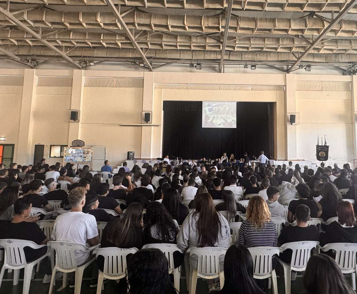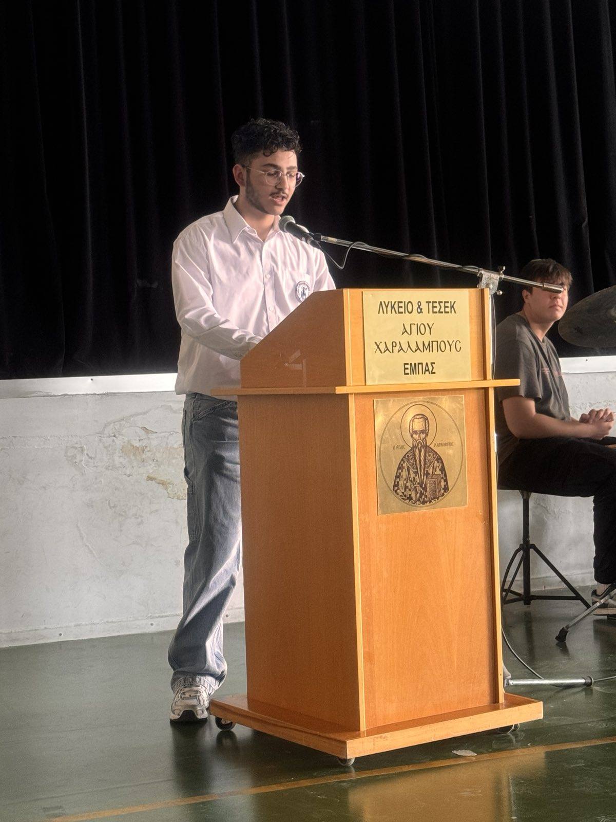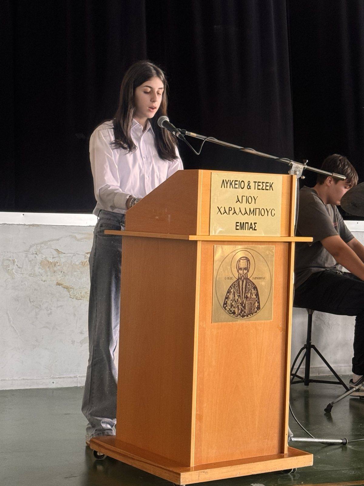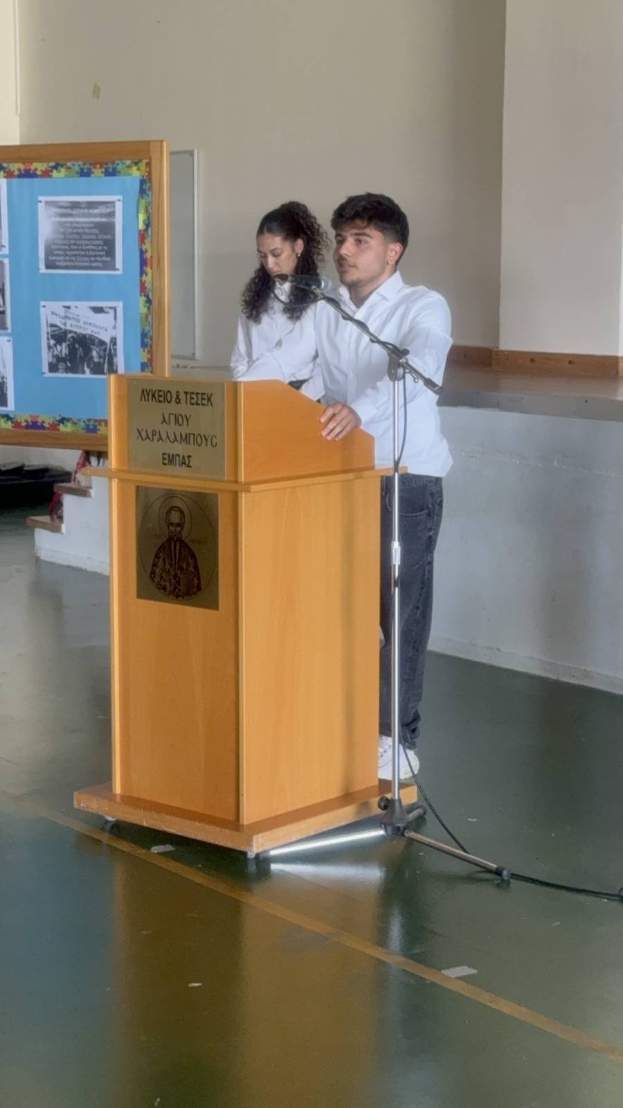 Ενδοσχολική εκδήλωση για καταδίκη της ανακήρυξης του ψευδοκράτους πραγματοποιήθηκε στις 15 Νοεμβρίου 2024 από τους μαθητές στο σχολείο μας Λύκειο και ΤΕΣΕΚ Αγίου Χαραλάμπους Έμπας.