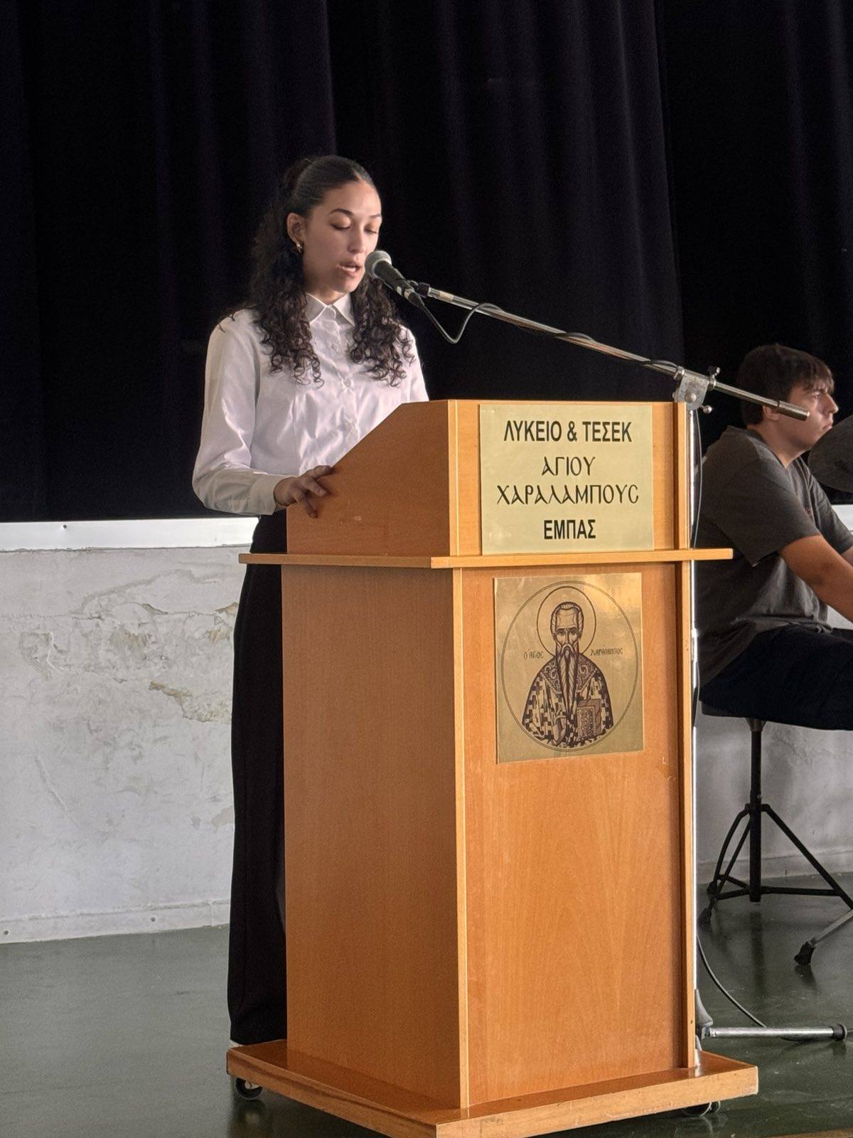 Την Παρασκευή 25 Οκτωβρίου 2024 πραγματοποιήθηκε στο Λύκειο και ΤΕΣΕΚ Αγίου Χαραλάμπους Έμπας η γιορτή για την Εθνική Επέτειο της 28ης Οκτωβρίου, στα πλαίσια εορταστικής εκδήλωσης που παρακολούθησαν καθηγητές και μαθητές του σχολείου μας.