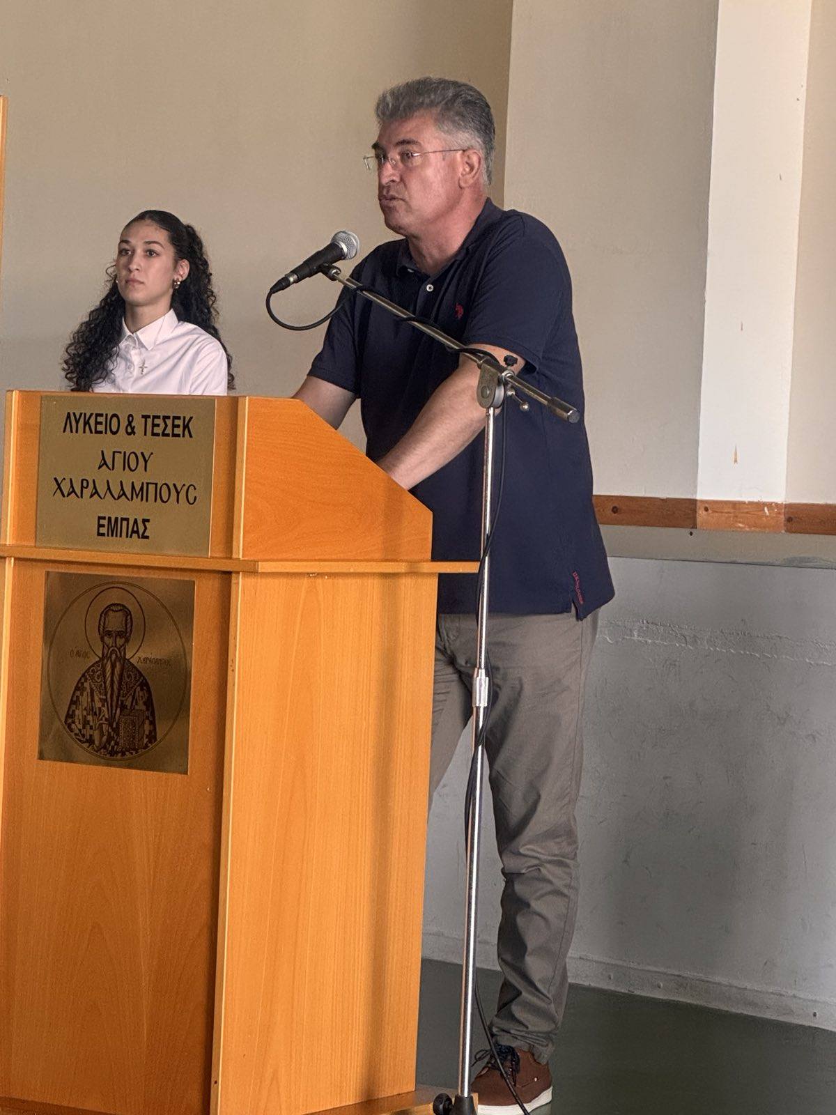 Με στόχο την ασφάλεια και την αποφυγή ανεπιθύμητων ατυχημάτων και στο πλαίσιο της πάταξης της επικίνδυνης και παράνομης χρήσης κροτίδων και πυροτεχνημάτων, πραγματοποιήθηκε τη Δευτέρα 07/04/2025 στο σχολείο μας Λύκειο και ΤΕΣΕΚ Αγίου Χαραλάμπους Έμπας σχετική ενημερωτική διάλεξη από εκπρόσωπο της Αστυνομίας Κύπρου.