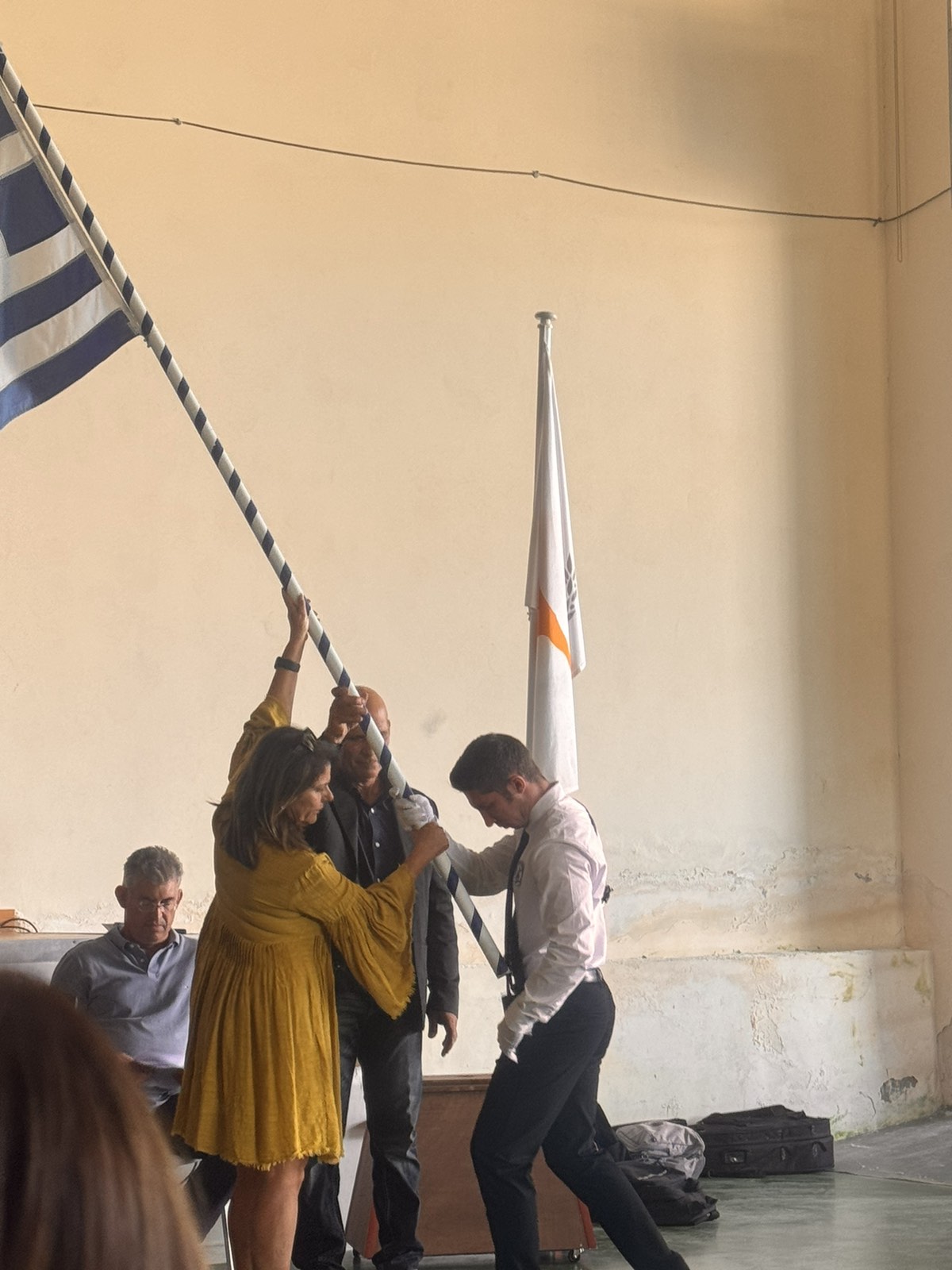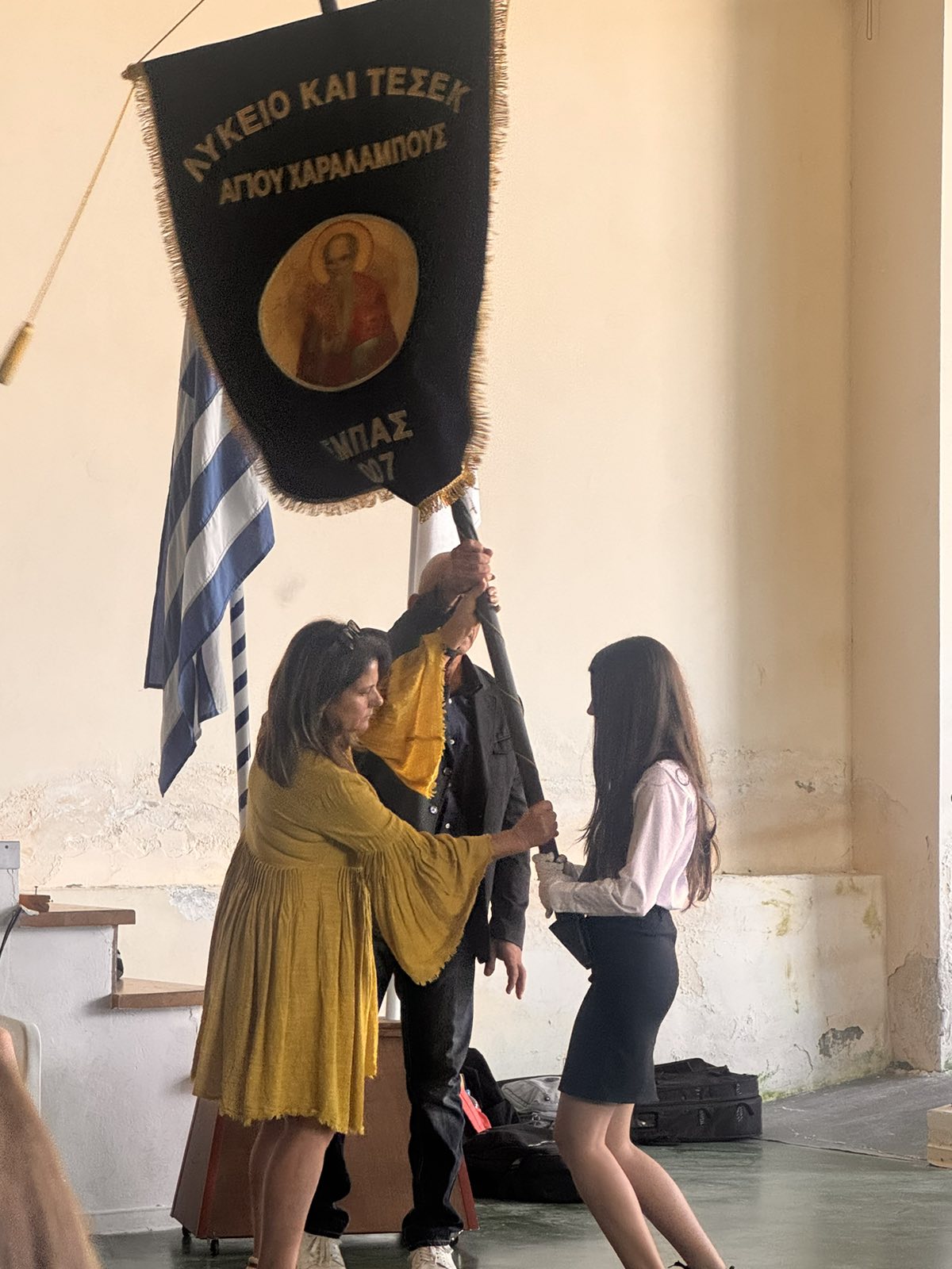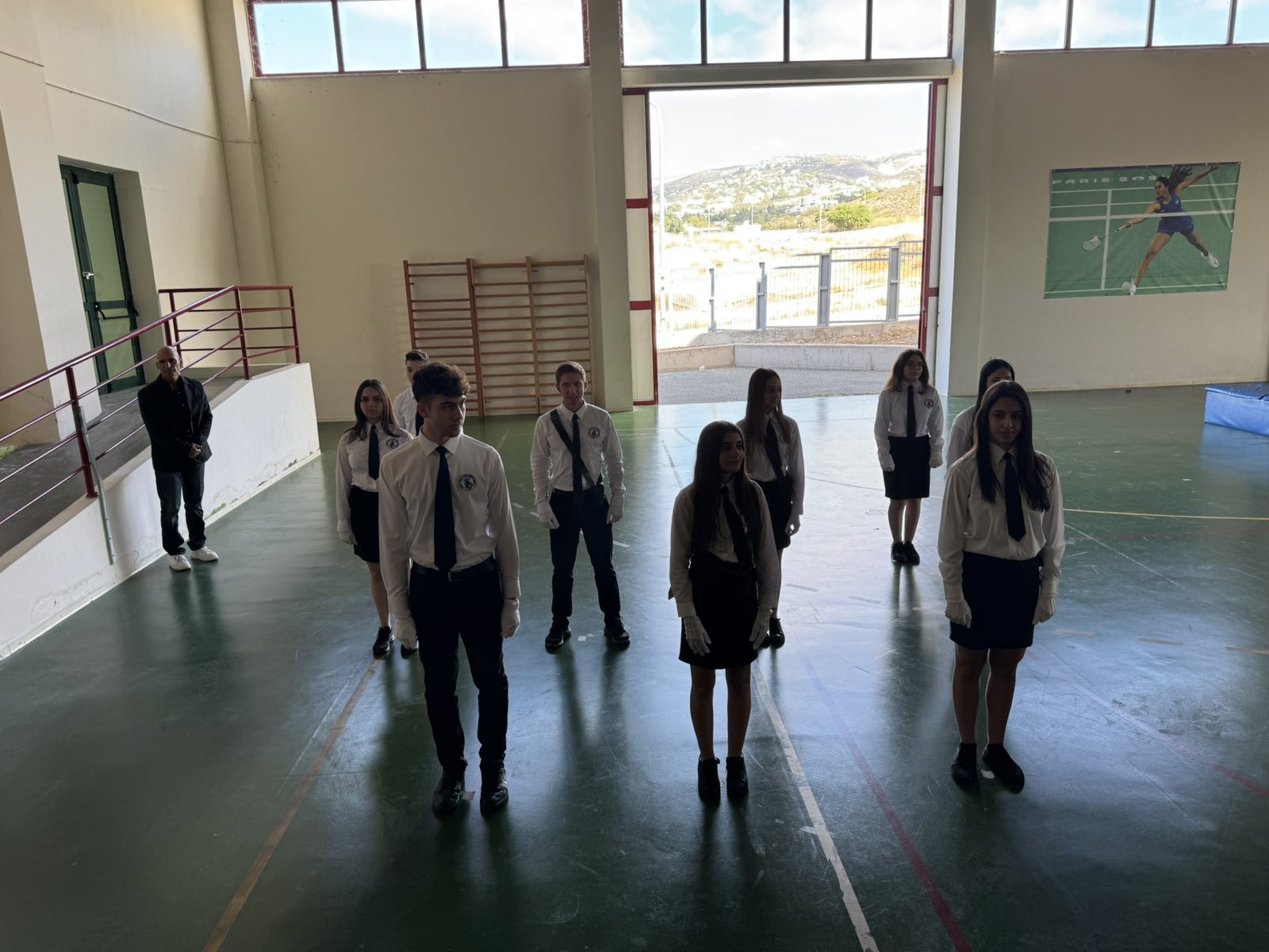 Η ημέρα ξεκίνησε με την έπαρση της σημαίας στην είσοδο του σχολείου, μέσα σε κλίμα συγκίνησης και εθνικής υπερηφάνειας.