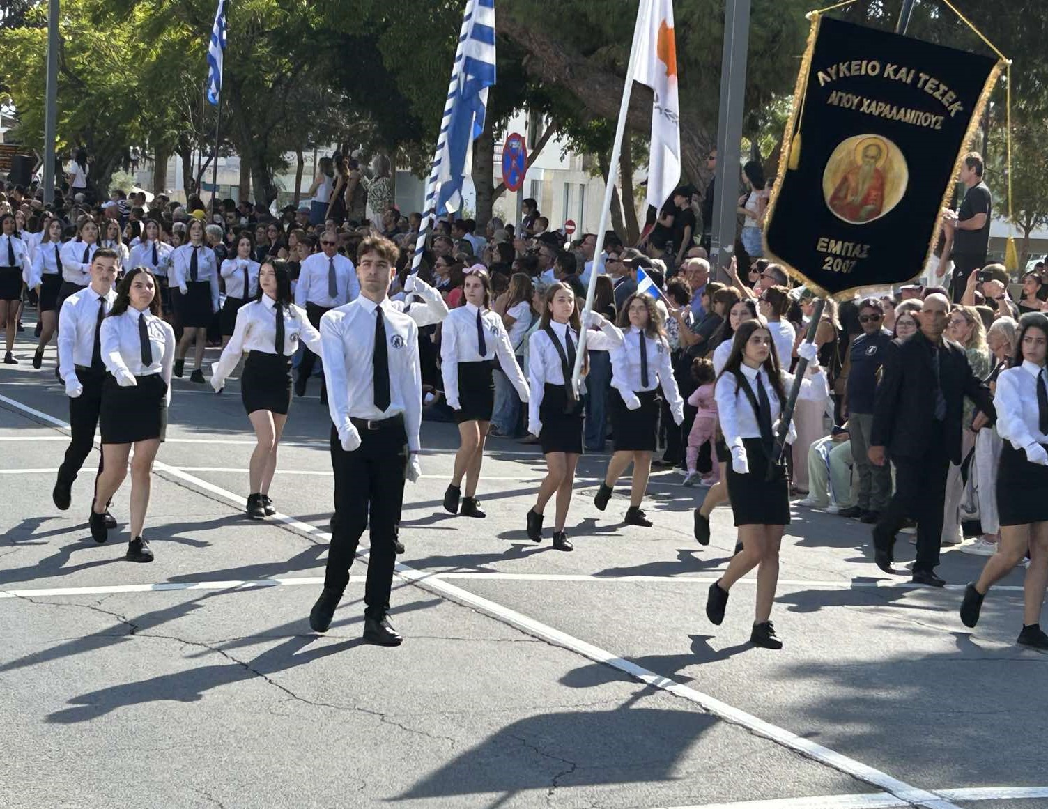 Στην μαθητική παρέλαση στο πλαίσιο των εορτασμών για την Εθνική Επέτειο της 28ης Οκτωβρίου, συμμετείχαν μαθητές και καθηγητές από το σχολείο μας Λύκειο και ΤΕΣΕΚ Αγίου Χαραλάμπους Έμπας.