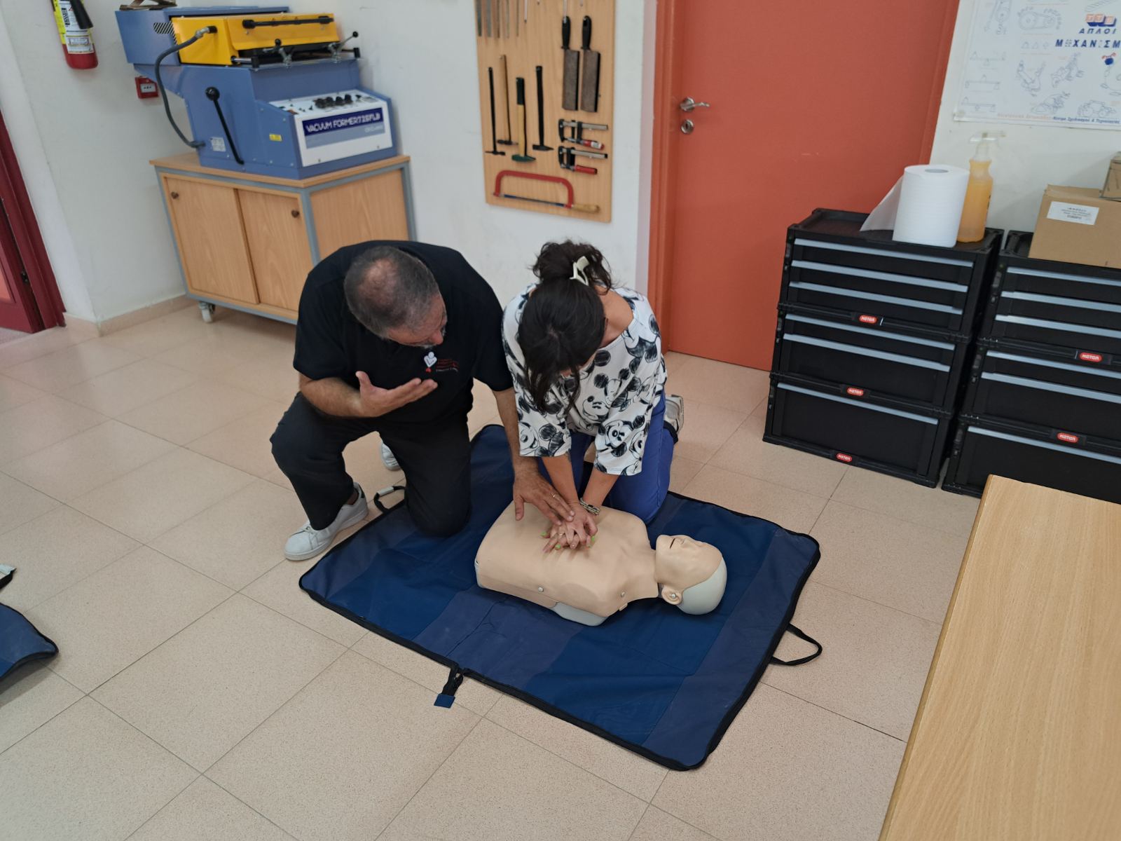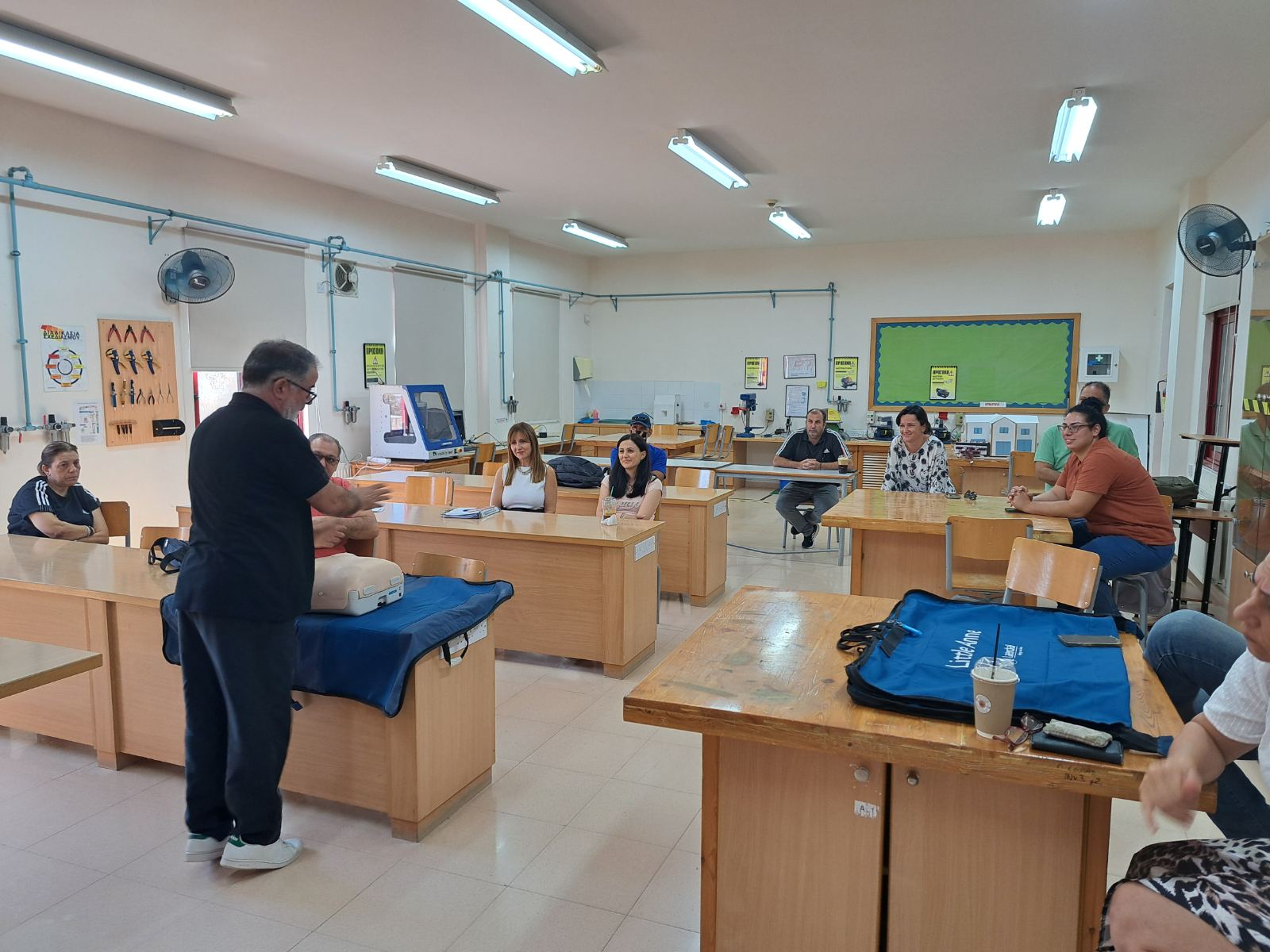Την Παρασκευή, 3 Οκτωβρίου 2025, πραγματοποιήθηκε στο σχολείο μας, Λύκειο και ΤΕΣΕΚ Αγίου Χαραλάμπους Έμπας, εκμάθηση στη χρήση απινιδωτή (AED) από Λειτουργό του Υπουργείου Υγείας.