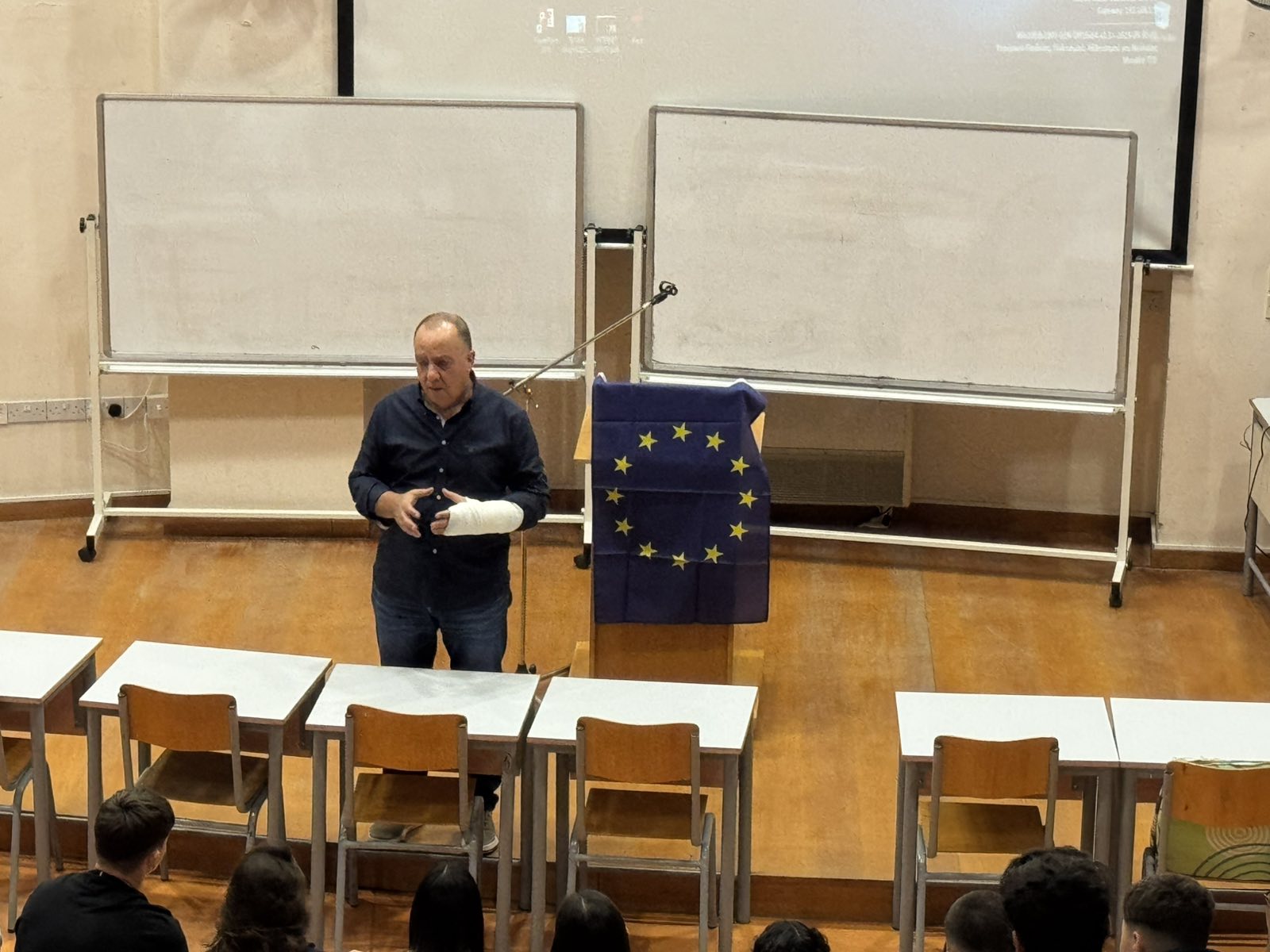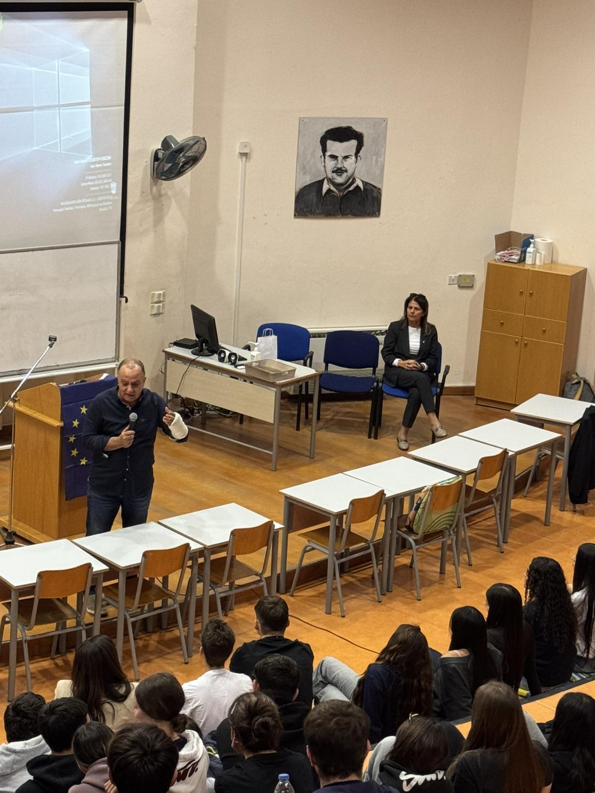 Κατά τη διάρκεια της διάλεξής του, ο κ. Γεωργίου αναφέρθηκε στο ευρύτερο έργο και τη σημασία της Ευρωπαϊκής Ένωσης, εξηγώντας με απλό και κατανοητό τρόπο πώς οι ευρωπαϊκές πολιτικές μεταξύ άλλων επηρεάζουν άμεσα τους νέους. Επίσης, απάντησε σε ερωτήματα των μαθητών σχετικά με το έργο και τον ρόλο του Ευρωπαϊκού Κοινοβουλίου.