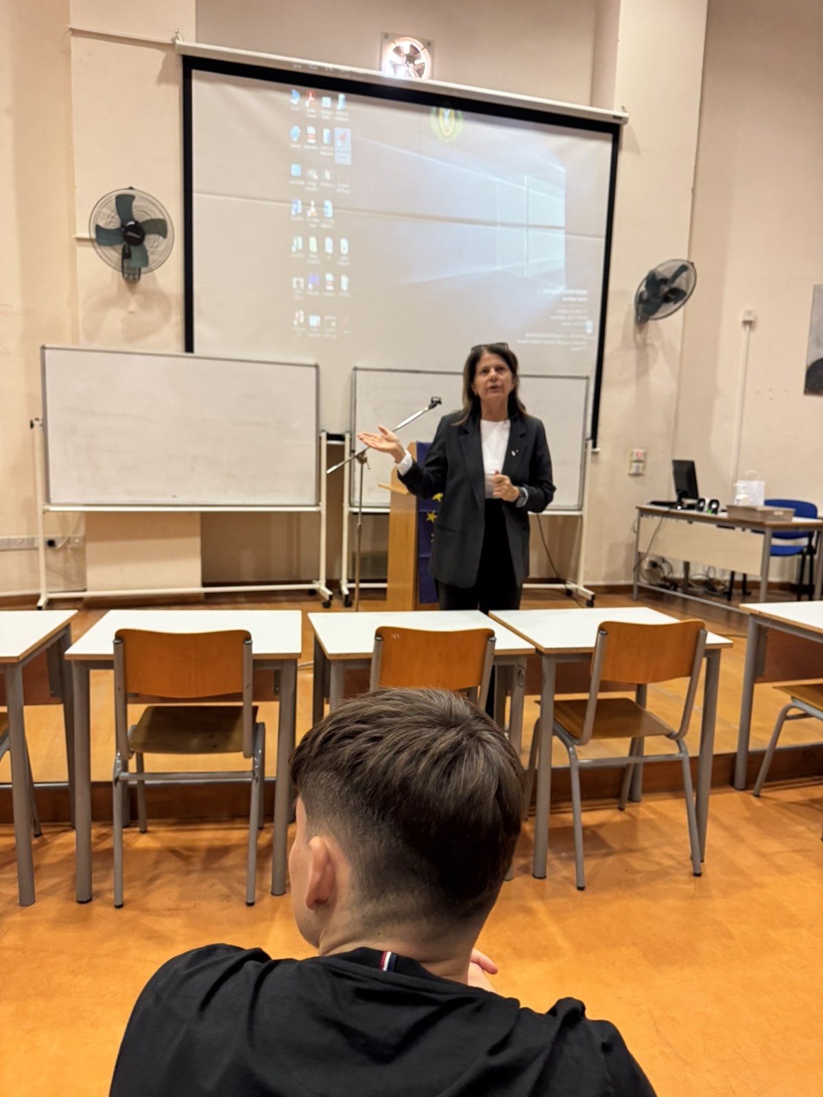 Η επίσκεψη αποτελεί μέρος ενός διαλόγου της κα Ραουνά με μαθητές από όλες τις βαθμίδες από όλη την Κύπρο ενόψει της Προεδρίας του Συμβουλίου της Ευρωπαϊκής Ένωσης, που θα αναλάβει η χώρα μας το 2026.