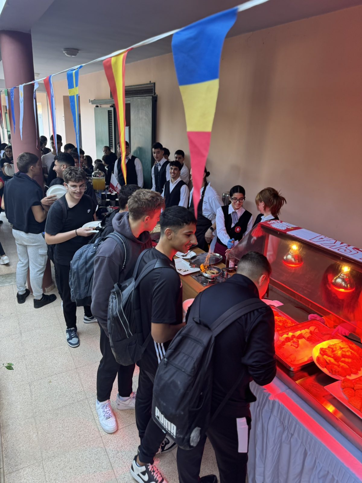 Οι μαθητές και μαθήτριες του σχολείου μας, έφεραν παραδοσιακά εδέσματα αντιπροσωπευτικά διαφόρων Ευρωπαϊκών χώρών, υποστηρίζοντας έμπρακτα το πνεύμα αλλά και τις δράσεις της ημέρας! Επιπλέον, μαθητές και μαθήτριες από τον κλάδο Ξενοδοχειακών και Επισιτιστικών Επαγγελμάτων ετοίμασαν τον μπουφέ, σέρβιραν τις λιχουδιές και προσέφεραν διάφορα ροφήματα, δημιουργώντας μια όμορφη και γιορτινή ατμόσφαιρα.