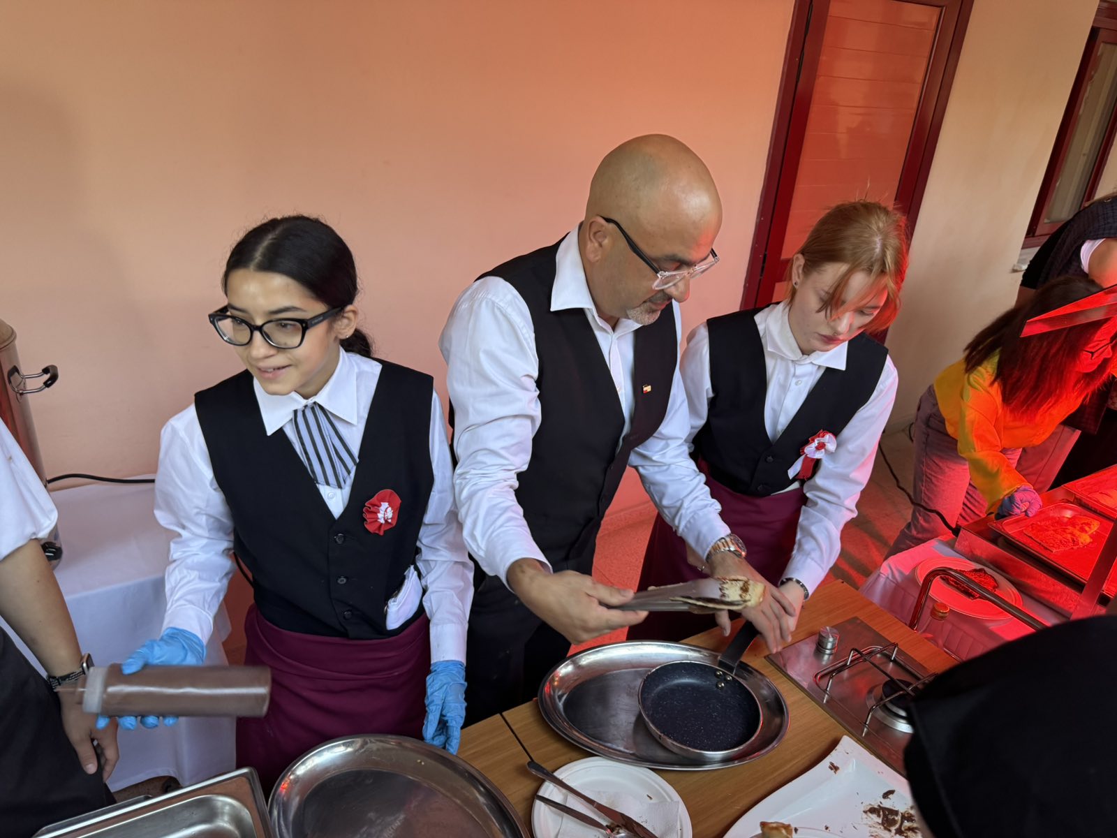 Επιπλέον, μαθητές από τον κλάδο Ξενοδοχειακών και Επισιτιστικών Επαγγελμάτων του σχολείου μας προετοίμασαν μια εξαιρετική δεξίωση, με την οποία ολοκληρώθηκε η επίσκεψη της κας Ραουνά στο σχολείο μας.