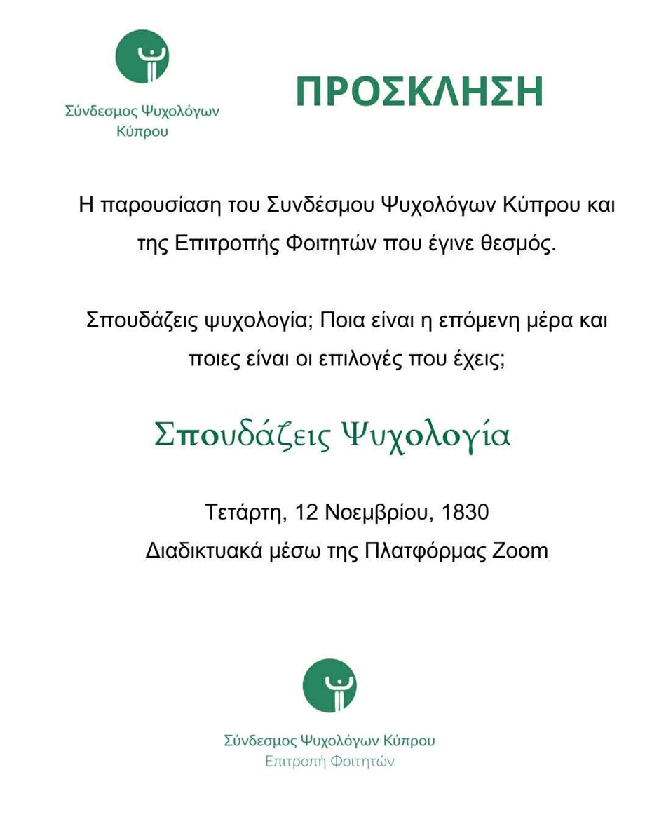 ΠΡΟΣΚΛΗΣΗ | Διάλεξη “Σπουδάζεις Ψυχολογία;”, Διαδικτυακά