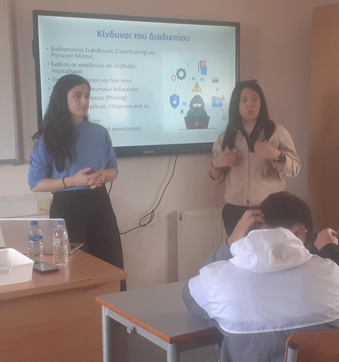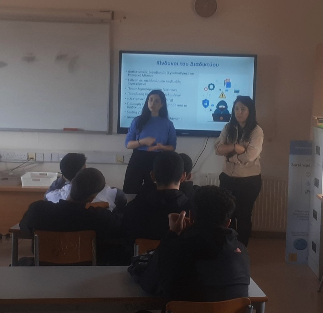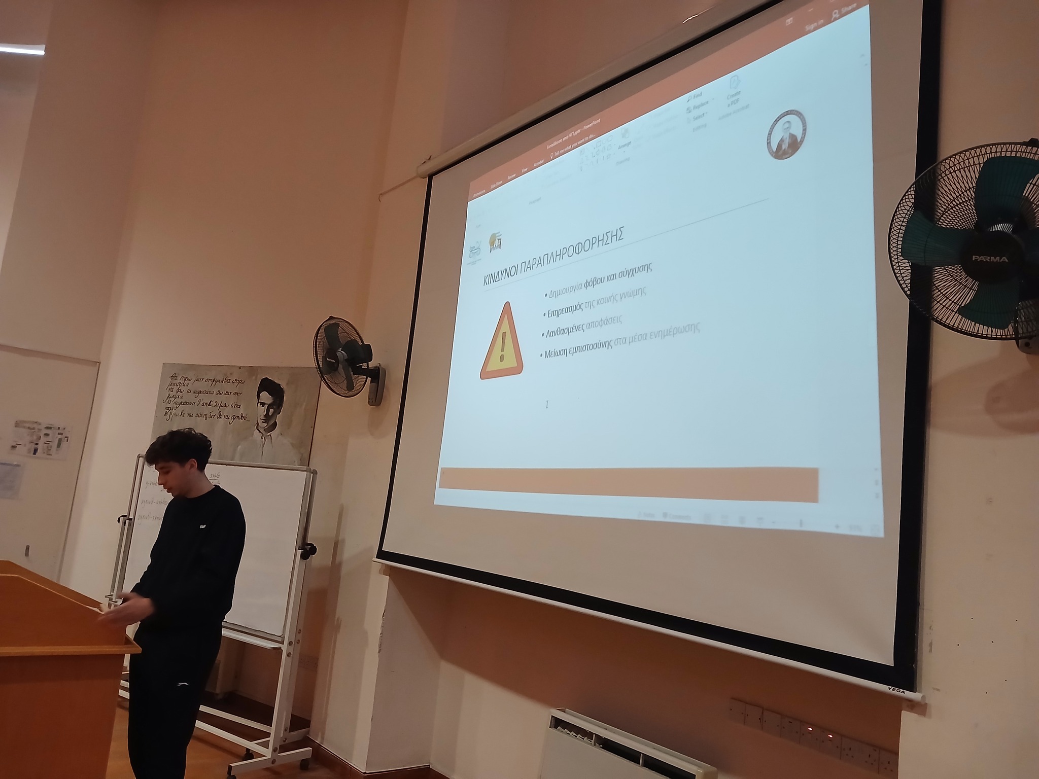 Στο πλαίσιο ενδυνάμωσης της γνώσης σε θέματα ασφάλειας στο διαδίκτυο των Ψηφιακών Πρωτοπόρων του σχολείου μας, πραγματοποιήθηκε σχετικό σεμινάριο ενημέρωσης, το οποίο υλοποιήθηκε από Λειτουργούς του Κέντρου Ασφαλούς Διαδικτύου. Οι μαθητές είχαν την ευκαιρία να ενημερωθούν για τους κινδύνους, τις ορθές πρακτικές και τους τρόπους προστασίας για την ασφαλή χρήση του Διαδικτύου.